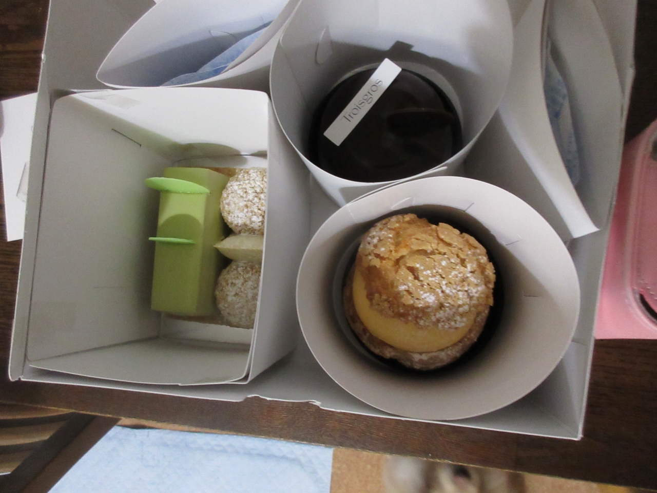 今回はピスタチオ・チョコ・定番のシュークリームにします、値段もビックリするほど高くは無い。