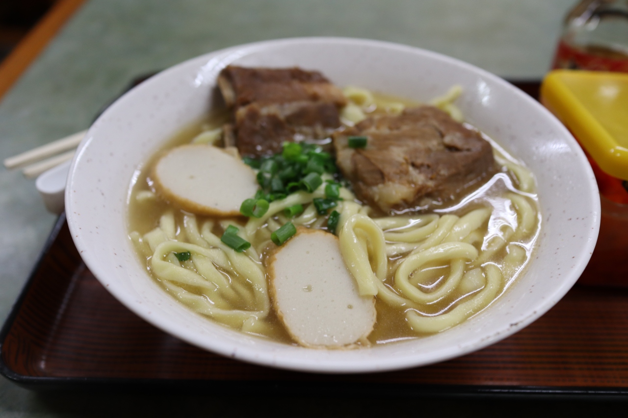 那覇市内に点在する三笠食堂。スーパーで言えばサンエーのように黄色い看板があちらこちらにありますが、この日は波の上ビーチに行った帰りに久米大通りに面した久米店に寄って朝から沖縄そばをいただきました。ここの麺は食べ易くて個人的には大好きです。