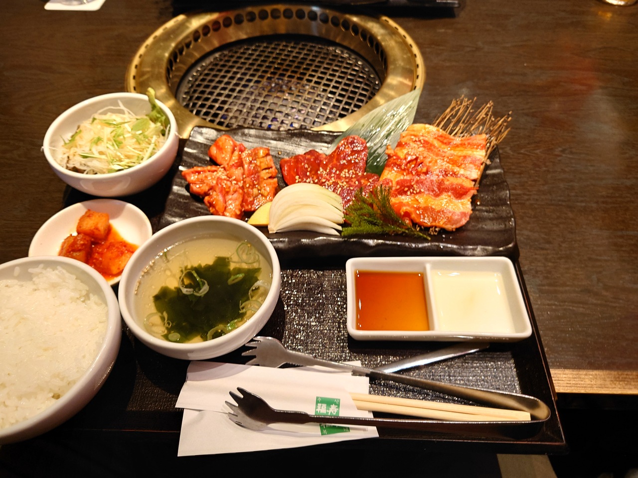 ランチ2000円、通常時4000円程度での食べ放題などもうたっているお店ですが、ランチセットも種類がイロイロあったので、ハラミ、ロース、カルビのランチセットを頂きました。料金はプラス300円の肉増量で1500円。スープ、キムチ、ライスおかわり自由で、肉質も悪くなかったので、まずまずの金額だと思います。
