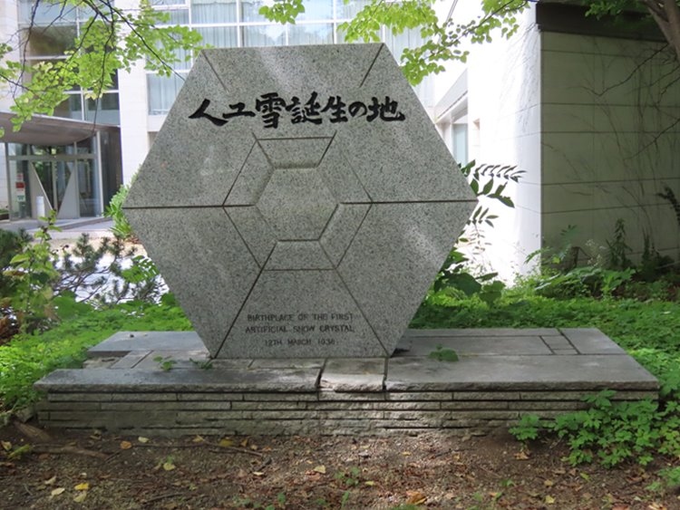 中谷宇吉郎博士の名は記憶にありました。石川県出身で柴山潟の近くに「雪の科学館」があり周回バスに乗って通りました。1930年から助教授として北海道大学に勤務、1936年に実験室で人工雪の製作に世界で初めて成功、気象条件と結晶が形成される過程の関係を解明したのだそうです。とても立派な碑でした。