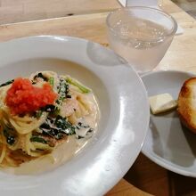 ランチタイムに訪れました。こんかり焼かれたフランスパンにもバターがついていて、順番に手際よくサーブしてくださるのがとても好印象です。パスタも美味しく、とてもお安いので、再訪ありなお店です。ただ一つ残念なのは、料理をされる方は髪をきちんとまとめた方が良いと思います…。