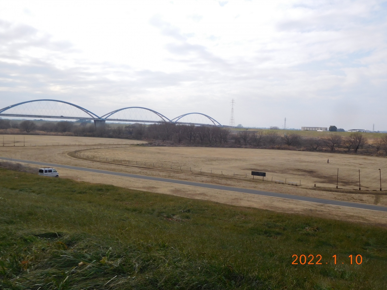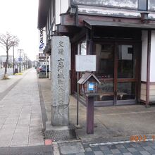 本丸石碑は川の土手の上にありました。博物館からは歩いて10分ほど。