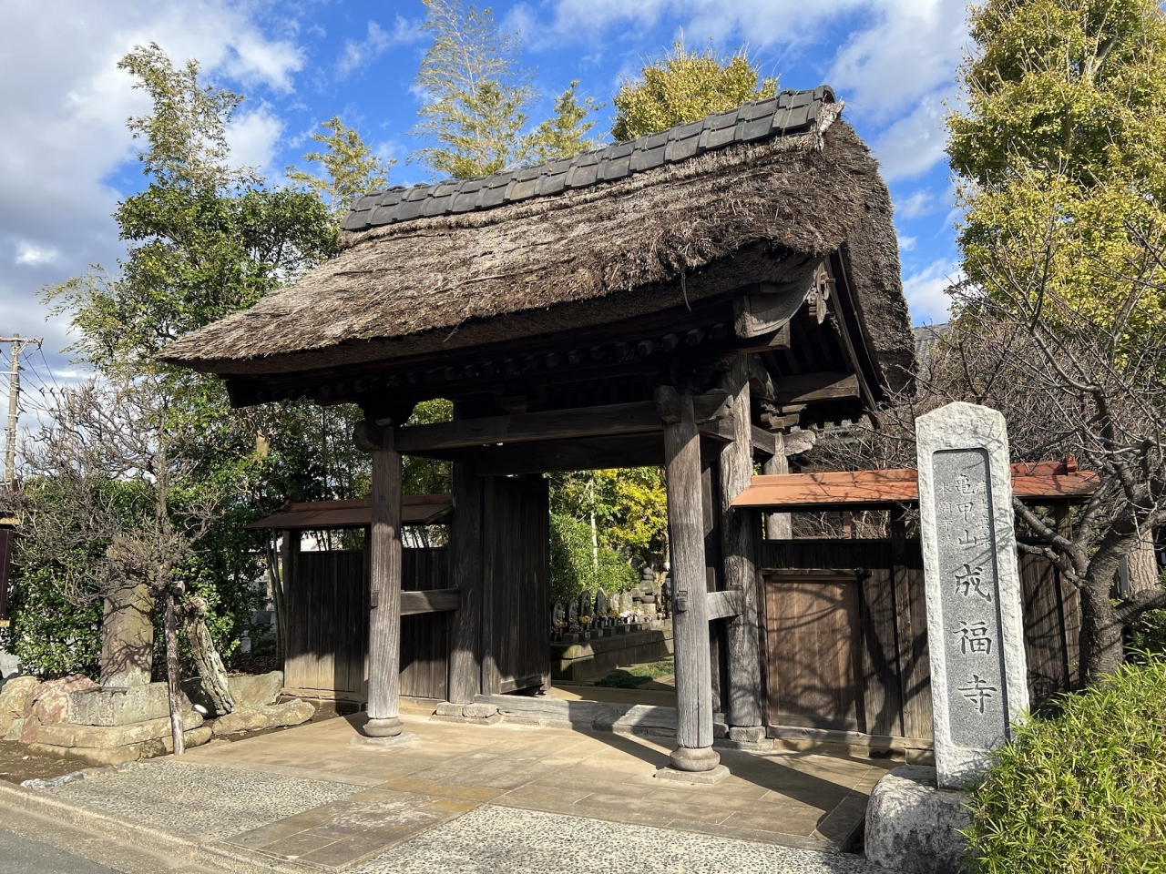 横須賀線の北鎌倉駅から、鎌倉駅と反対側へ線路沿いを歩いて10分ほどのところにあり、鎌倉市内では唯一の浄土真宗のお寺です。正式名称は、亀甲山法得院成福寺。鎌倉幕府の第3代執権、北条泰時の子、泰次によって1232年に創建されました。威厳のある山門や本堂は、横須賀線の車内からもよく見えます。
