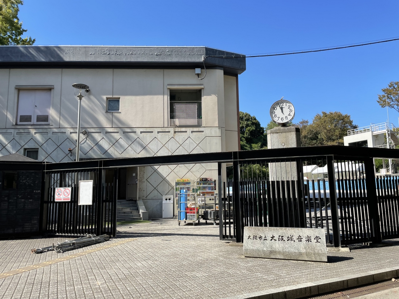 大阪城公園内にある野外音楽堂です。天王寺公園内にあったものを移転し、1982年にオープンしました。コンサートをはじめ講演会など様々なイベントに使用されていて、訪れた時はちょうど準備中でした。森林に囲まれ開放的な雰囲気で、環境も良いところにあります。