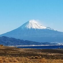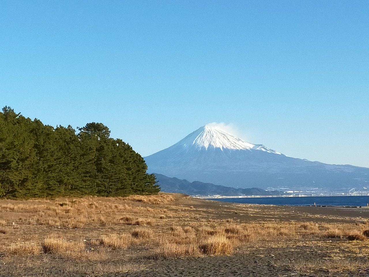 前回訪ねた時はまだ雪が積もり始めだったので、今回は十分積もってから、晴れた日を狙って行きました。朝一番で行ったので、雲が出ることも無く、とてもいい状態で見られました。定番の場所から定番の眺めは最高でした。乗用車だと海のすぐ近くに無料駐車場があり、そんなに歩かないので楽です。前回行ったので行きませんでしたが、松並木の神の道を通って御穂神社へ歩くのも面白いです。