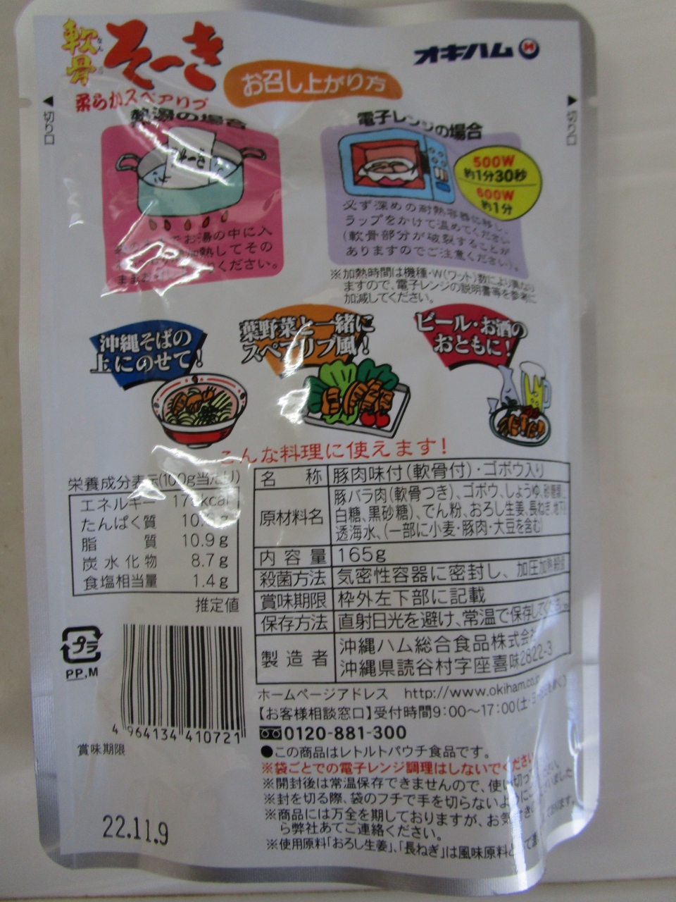 オキハムのそーき(柔らかスペアリブ、牛蒡入り)165g