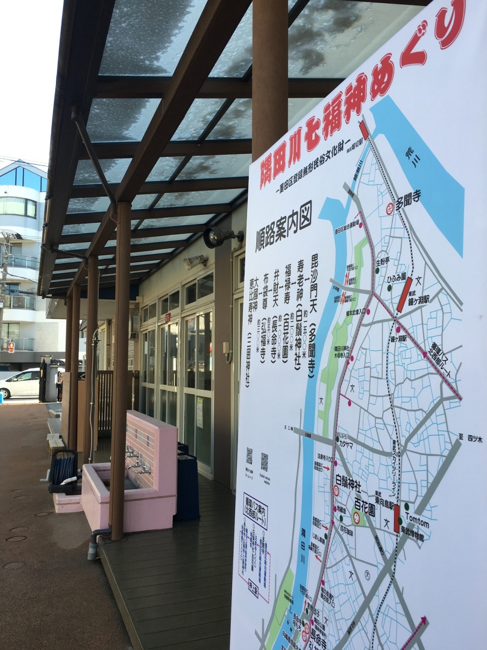 多聞寺からスタートしました。順路案内図の看板があり、他の寺にも同じ看板があって全部廻ると4キロぐらいの距離です。東京のビル群を見ながら歩きましたが隅田川沿い等を歩き、公園を通ったりしてゆっくりと歩き3時間ぐらいで周遊しました。