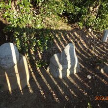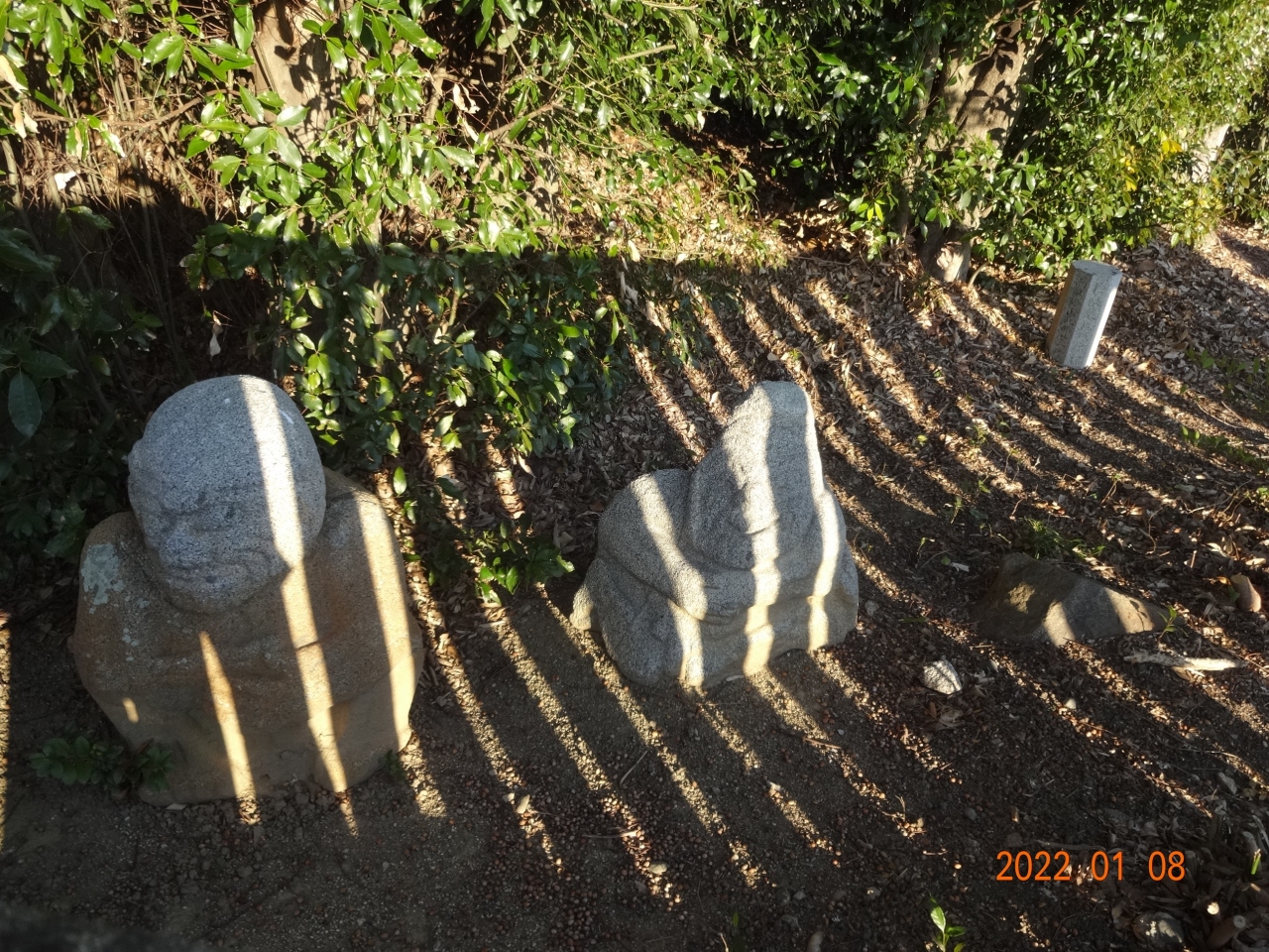 柵の中になりますが、奇妙な顔をした猿石が四つありました。