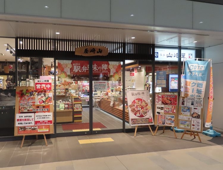 この旅では上越妙高駅は短時間の途中下車だったので、早めの昼食用に駅弁を調達して再び新幹線にすぐ乗る予定でした。ところが午前10時すぎでは早すぎたのか、商品があまり揃っておらず、手頃なものを見つけられませんでした。というわけで開き直って「いなり寿し」。なんか2日後にも別の観光地で似たような体験をしてしまい、食事についての計画性のなさを痛感です。