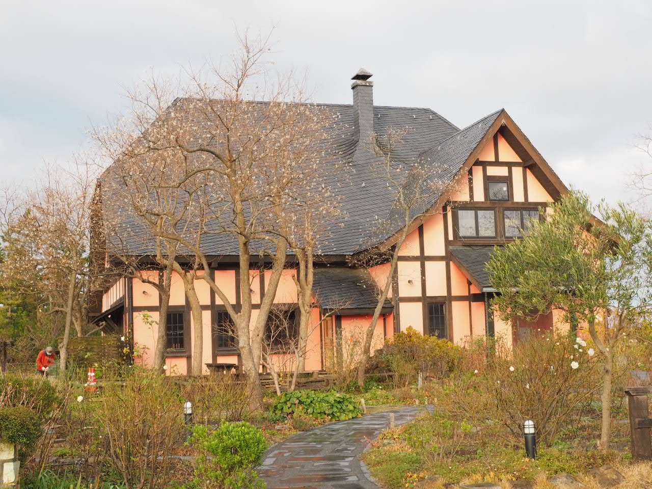 建物はドイツ人建築家カール・ベンクス氏による、新潟の古民家とドイツの建築を融合させたものらしい。