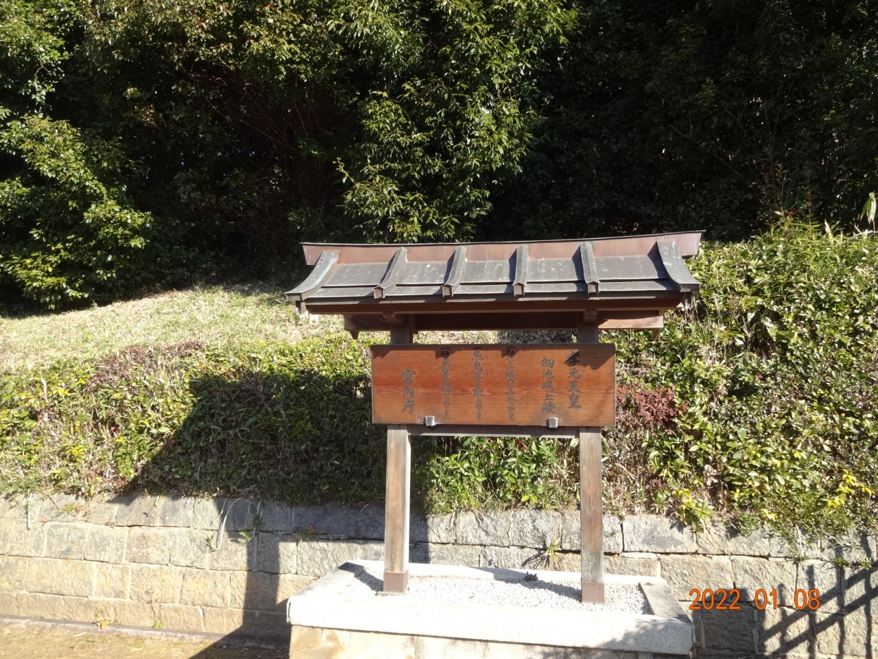 入口付近に自転車を止めて階段を登って天皇陵に向かったのですが、入り口付近は工事中でした。