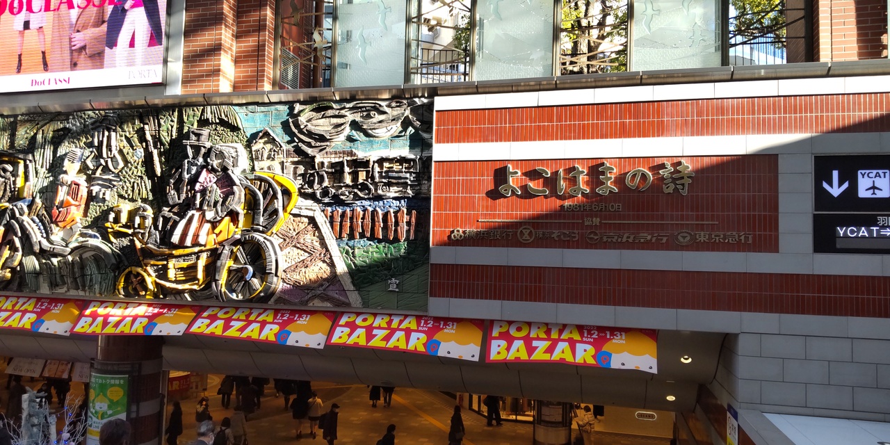 その入口の上に横浜銀行・横浜そごう・京浜急行・東京急行の連名で「よこはまの詩」のプレートがあります!