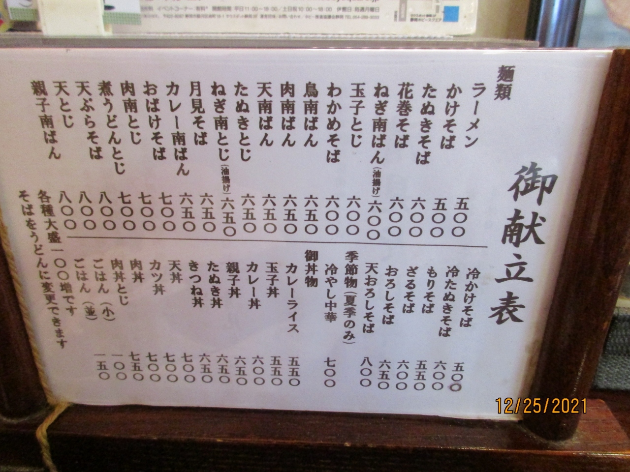 蕎麦屋のようだが、ラーメン・カレー・丼ものもありいわゆる地元に密着した大衆食堂。