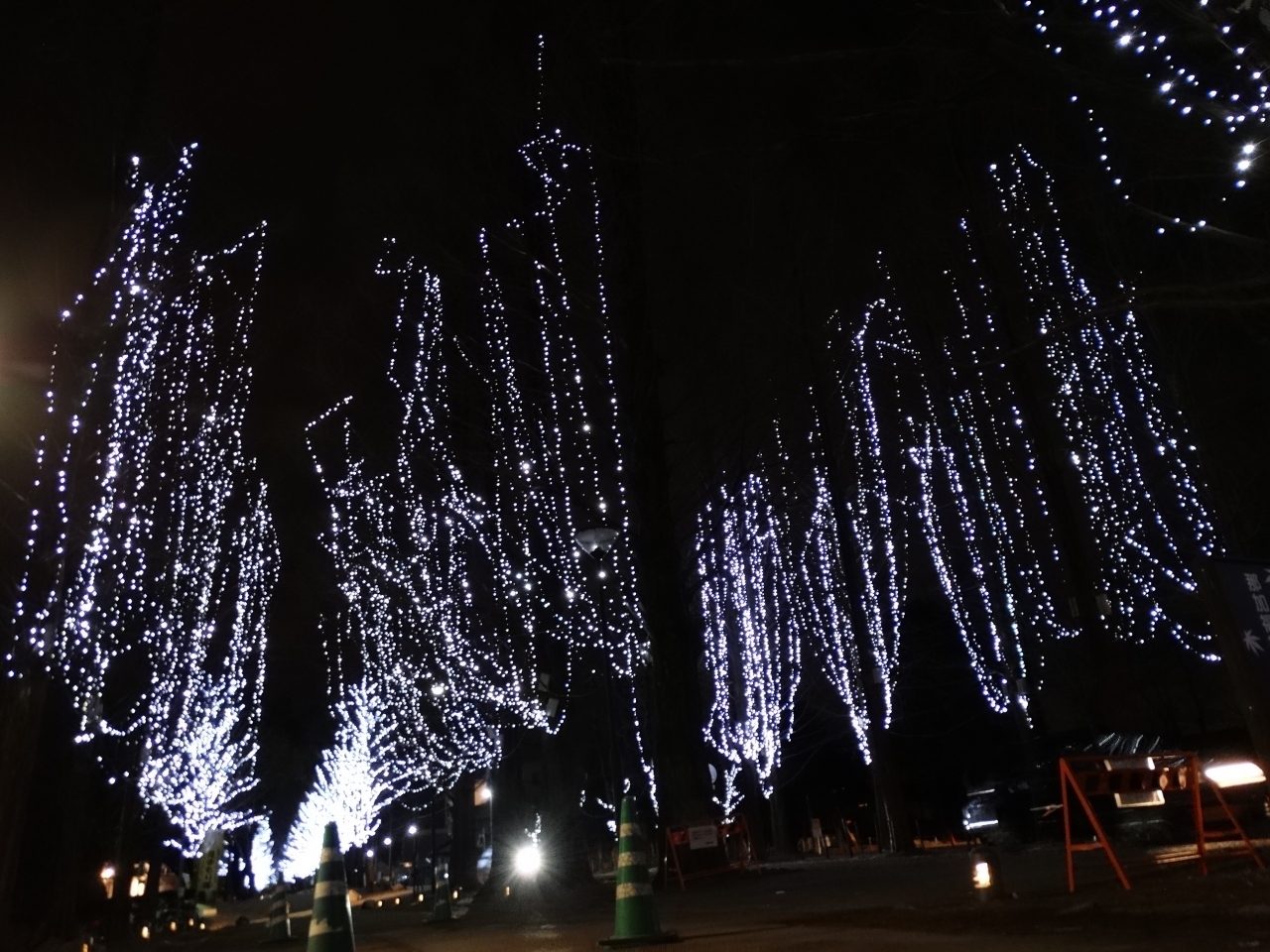 初雪は、もう終わりましたが、またちらほらと舞い降りてきました。そんな中のイルミネーションは、また一味も二味も違った趣きがあって、鑑賞するのに値すると思いました。防寒対策がとても大変でしたが、また乙でした。