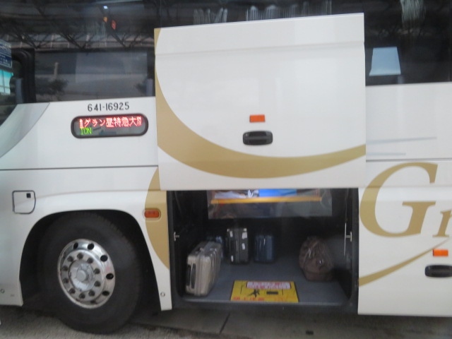 金沢駅から大阪駅までの「グラン昼特急」を利用しました。3列シートのバスで、片道3500円と超お得です。ただし、もう1便早く帰りたくなったのですが、時間変更はできませんでした。格安便の落とし穴ですね。あと、高速の事故があって、大阪到着が2時間ほど遅れました。仕方ないけど疲れました。