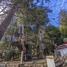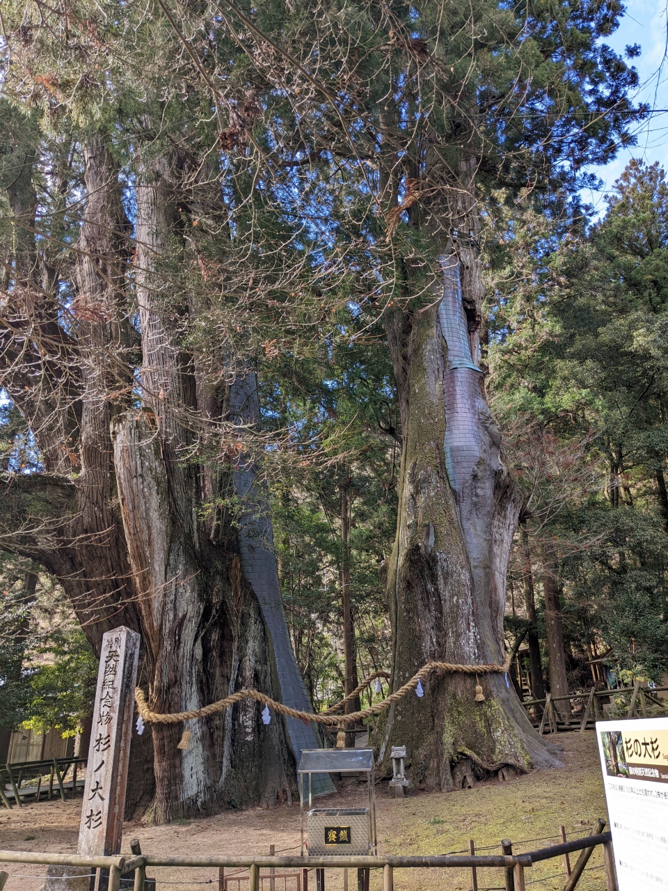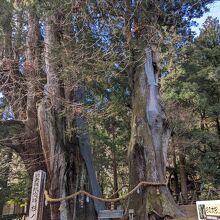 日本一の杉の木との触れ込みだが、何をもって日本一かはさておき日本有数の杉の木であることは間違いない。ぱっと見は南側の杉は単木として縄文杉に匹敵し、北側の杉は目通り周囲8メータクラスはありそうで屋久島の6神木クラスに匹敵する。この2本の杉の物量はすさまじいものがある。アクセスは面倒だが見る価値はあった。