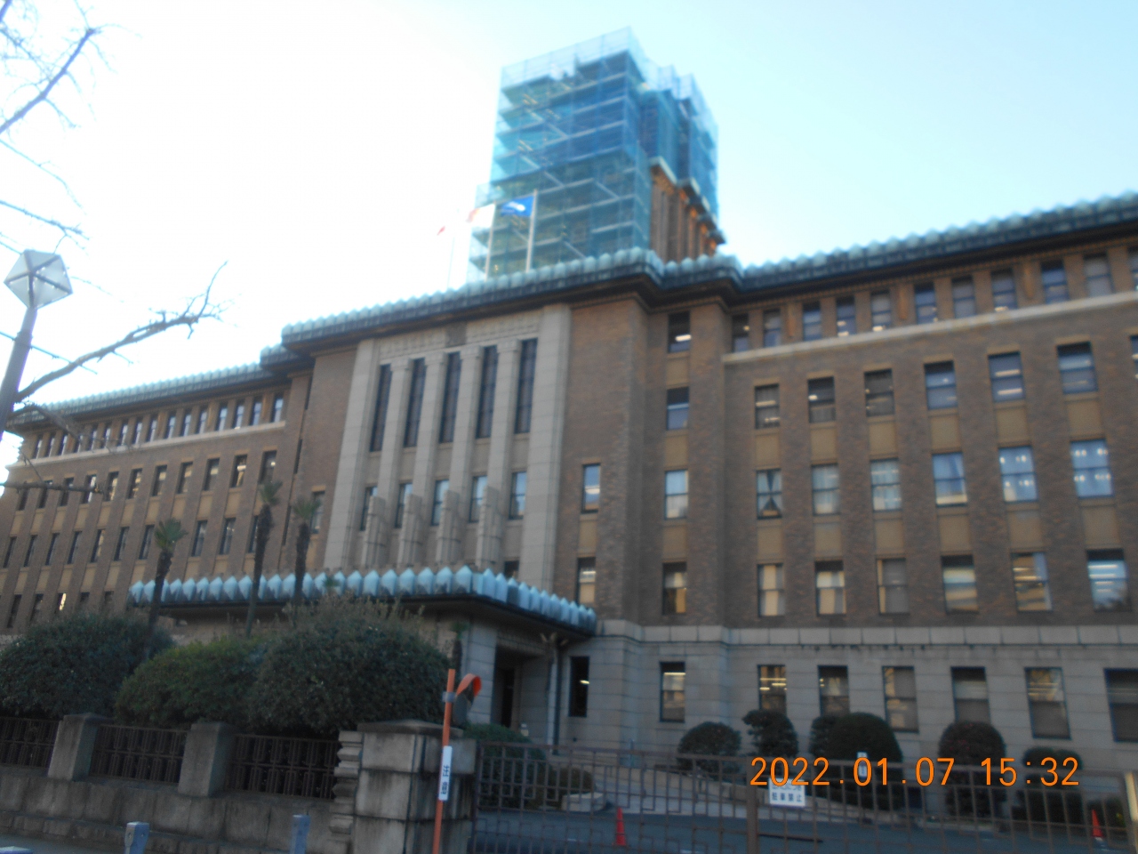 いつも見慣れた県庁本庁舎の上のキングの塔は工事中で、残念ながら今は見ることが出来ません。歴史ある建物なので大切に保存するためには必要な工事なので仕方がありません。