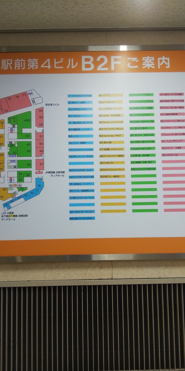 大阪駅前第4ビルはJR大阪駅や大阪メトロ梅田駅の南側にある4つのビルのひとつです。第4ビルは一番北側にあり、地下街のホワイティ梅田や阪神百貨店の地下一階とつながっています。リーズナブルなランチのお店やチケットショップがあります。
