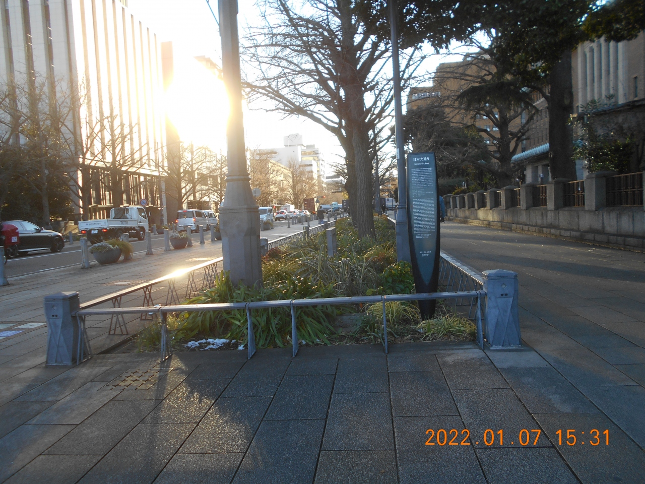 海沿いをとおっている海岸通りと直角に交わる大きな通りで県庁の正面玄関前の大通です。、海岸通りから日本大通りをまっすぐ進むと横浜公園に入り横浜スタジアムの所に出ます。開港広場公園やシルク博物館。神奈川県民ホール、山下公園などへも歩いて行けます。