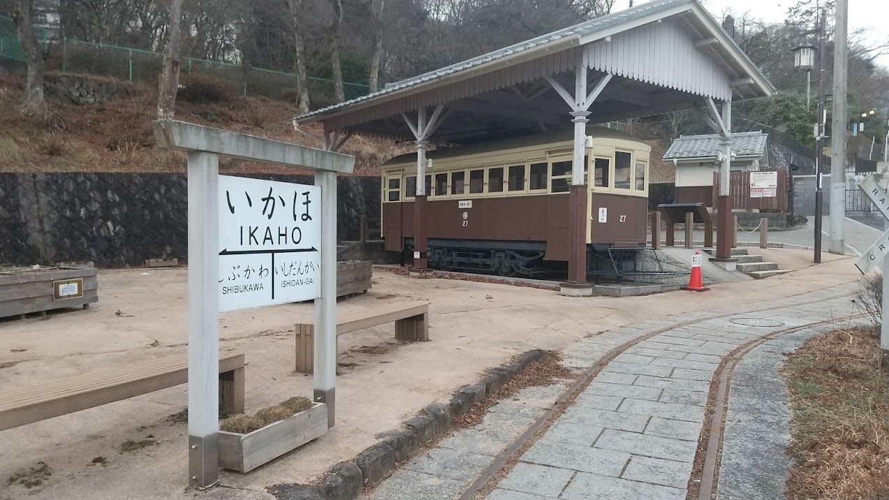 ここに渋川と伊香保温泉を結んでいた軽便鉄道が展示されています。現在でもバスが急坂を上るのに、当時この急斜面を上る電車の軽便鉄道があったことには驚かされます。