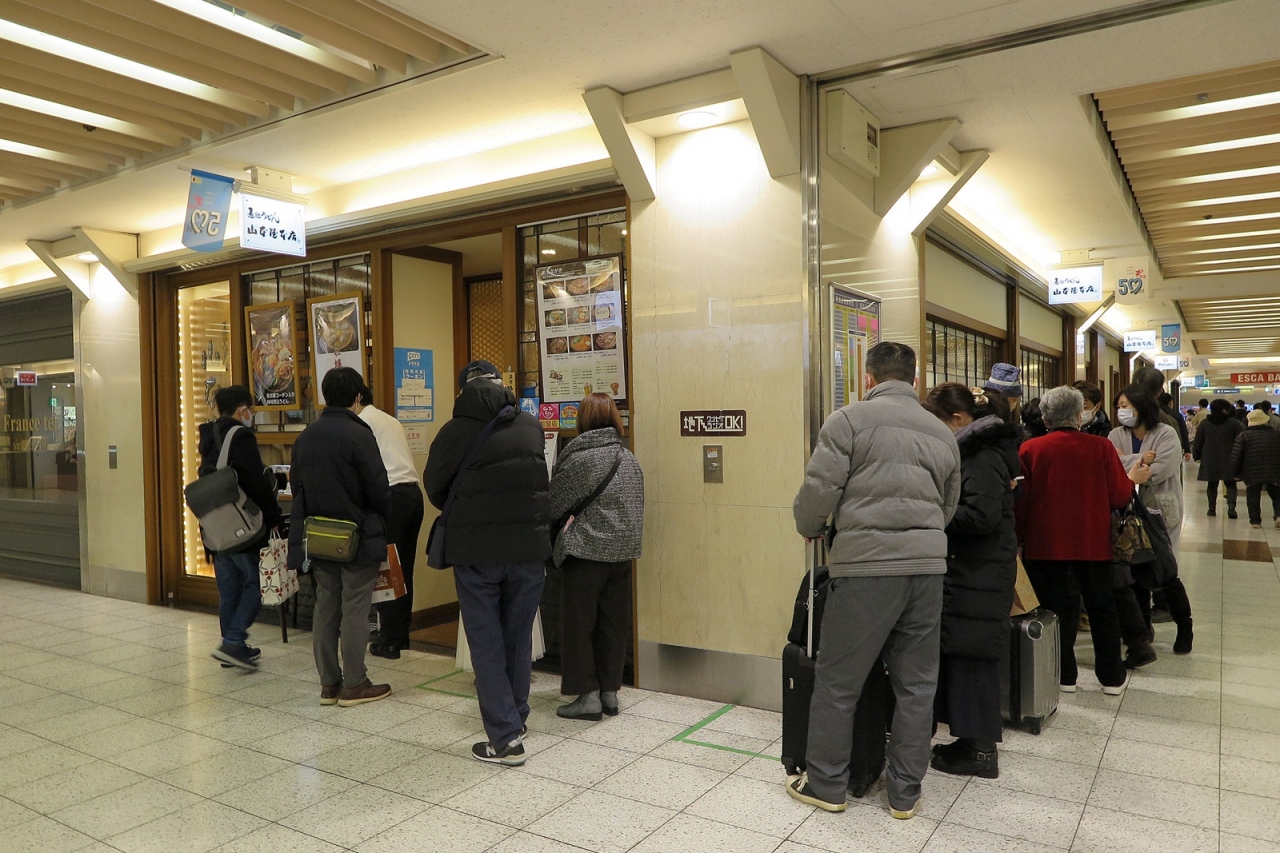 山本屋本店は大門本店、栄中央店、広小路伏見店、今はなき栄中日ビル店、このエスカ店の利用経験がありますが、その中では一番混んでいると思います。新幹線利用のお客さんにとって一番利用しやすいですものね。休日絡みの昼食時などには長い行列ができますので、時間を余裕をもって訪れて下さい。