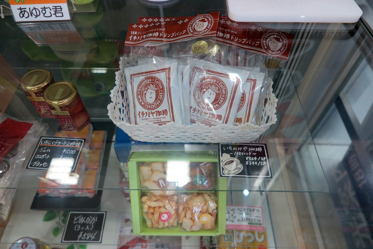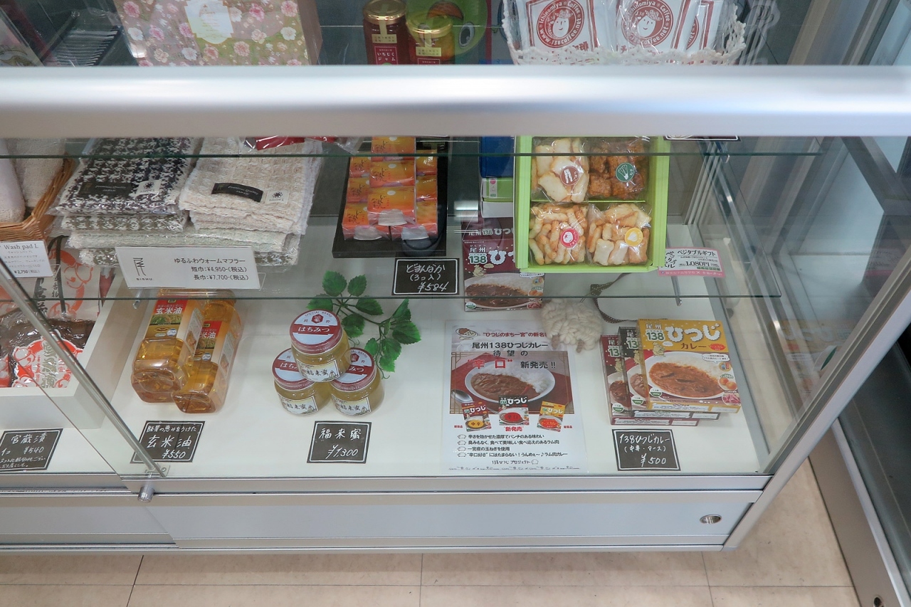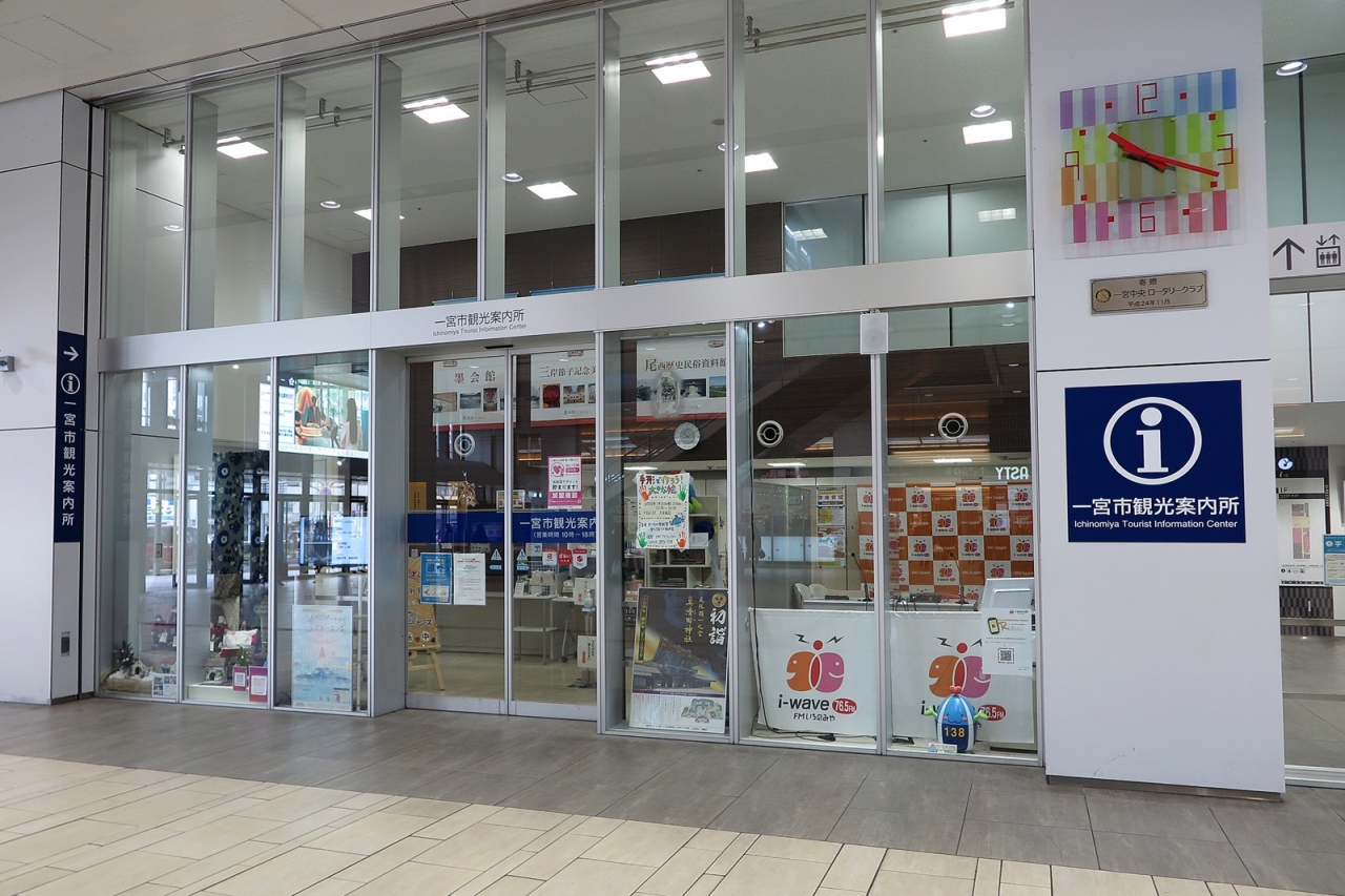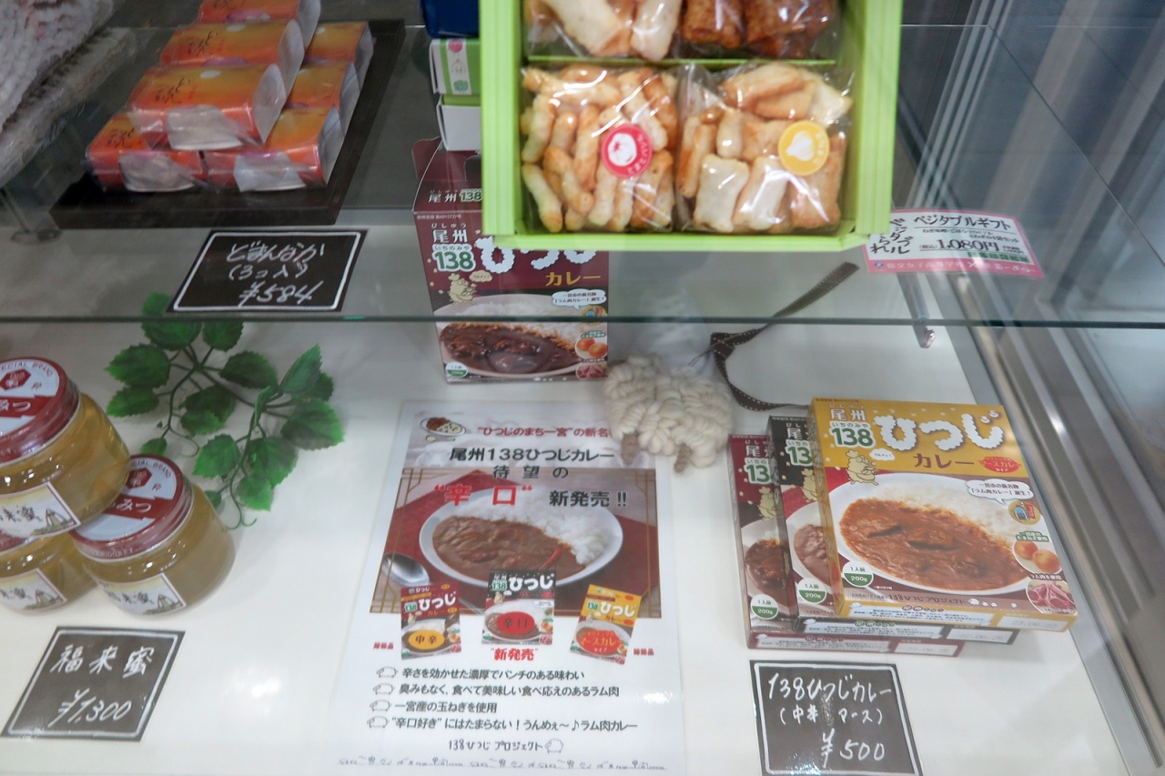 初めて訪れた街で頼りになるのは観光案内所ですが、「尾張一宮」駅にはガラス張りの立派な案内所がありました。まずは市街地図をと思って訪れたのですが、喫茶店のモーニングサービスの元祖とされる一宮らしくモーニングの地図がありました。また所内のガラスケースには一宮で売り出し中の「イチノミヤコーヒー138」、毛織物生産地として有名であったことから羊肉のカレー(ちょっと無理が…)など、街おこしの品々も展示されていました。