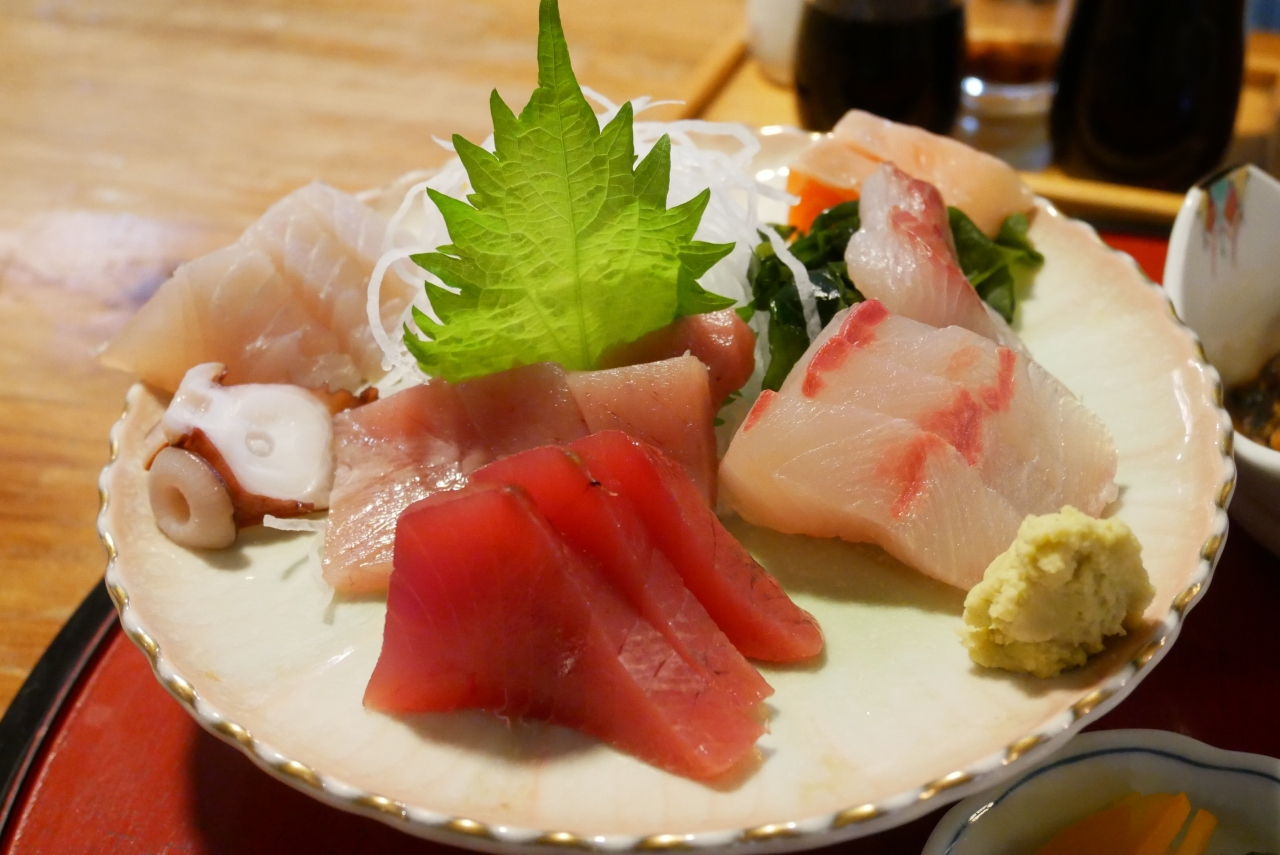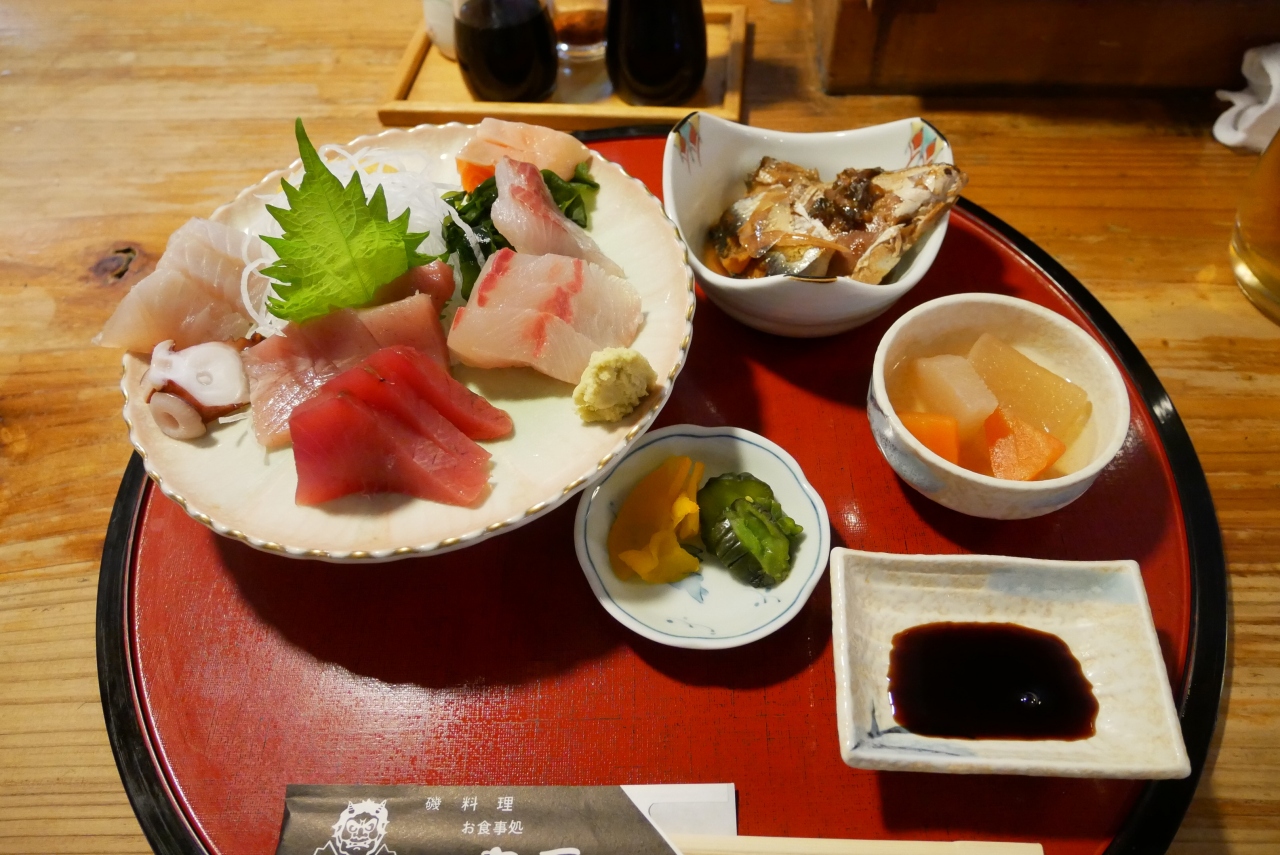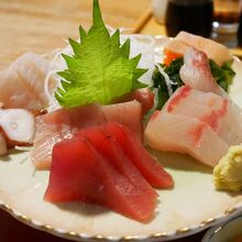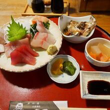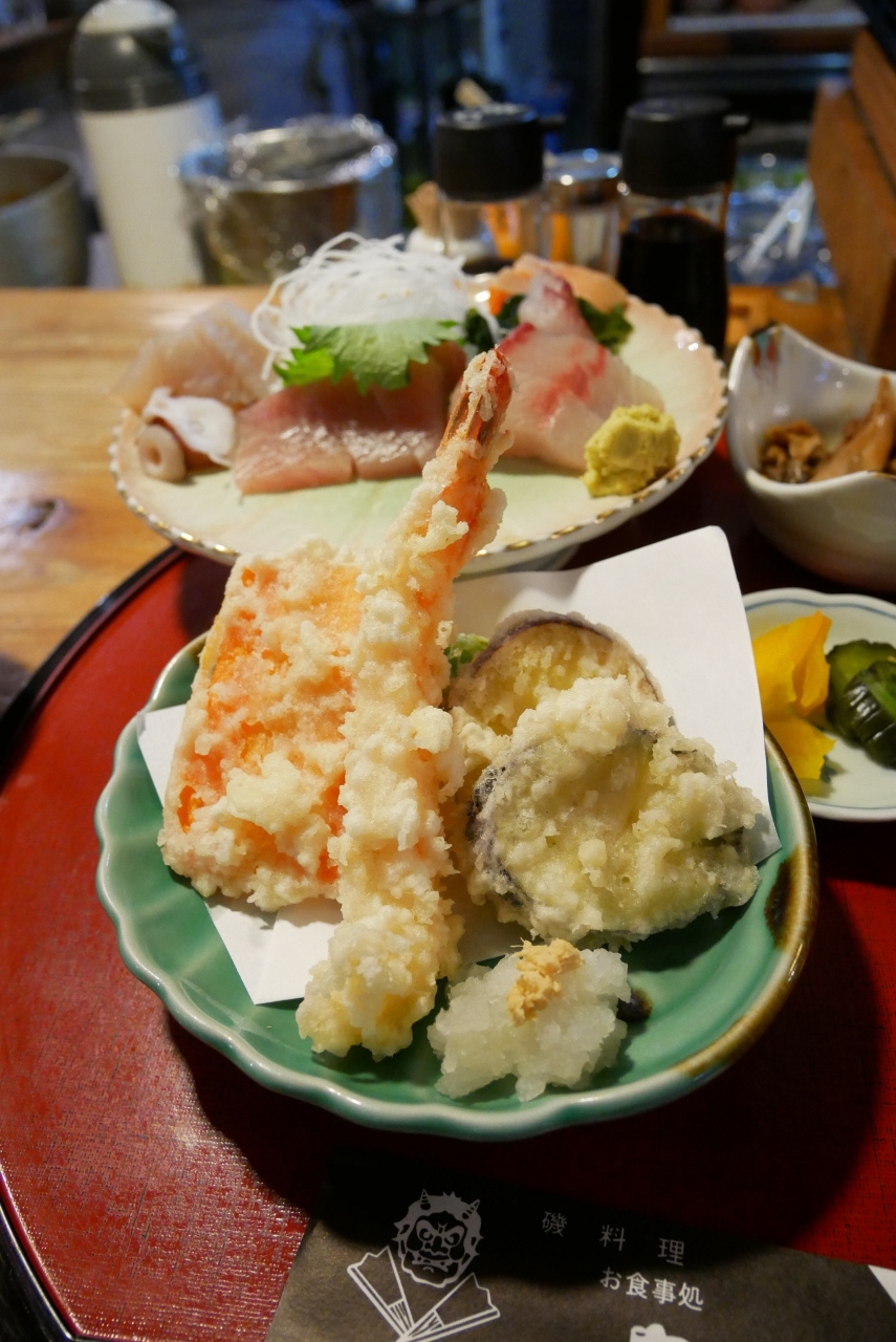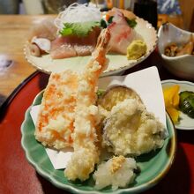 小鉢二品、刺身7点盛り、天ぷら盛り合わせ