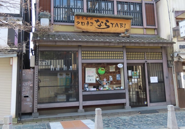 猿沢池から三条通りを東向商店街に入っていく手前左側にある観光案内所です。なぜクロネコというのか、わかりませんでした。当然あのマークを探したのですがわからず。手ぶらで散策を楽しんでほしい、という意味もこめているようです。買ったお土産を配送してもらえる、地元のウィンウィンを狙った企画みたいです。個人的な意見を言わせていただくと、無計画にお土産を買い過ぎて身軽になりたい、と思ったことはないし、単に荷物を預けるなら大きな観光地にはコインロッカーが完備しています。いまいちハマりどころが見えませんでした。