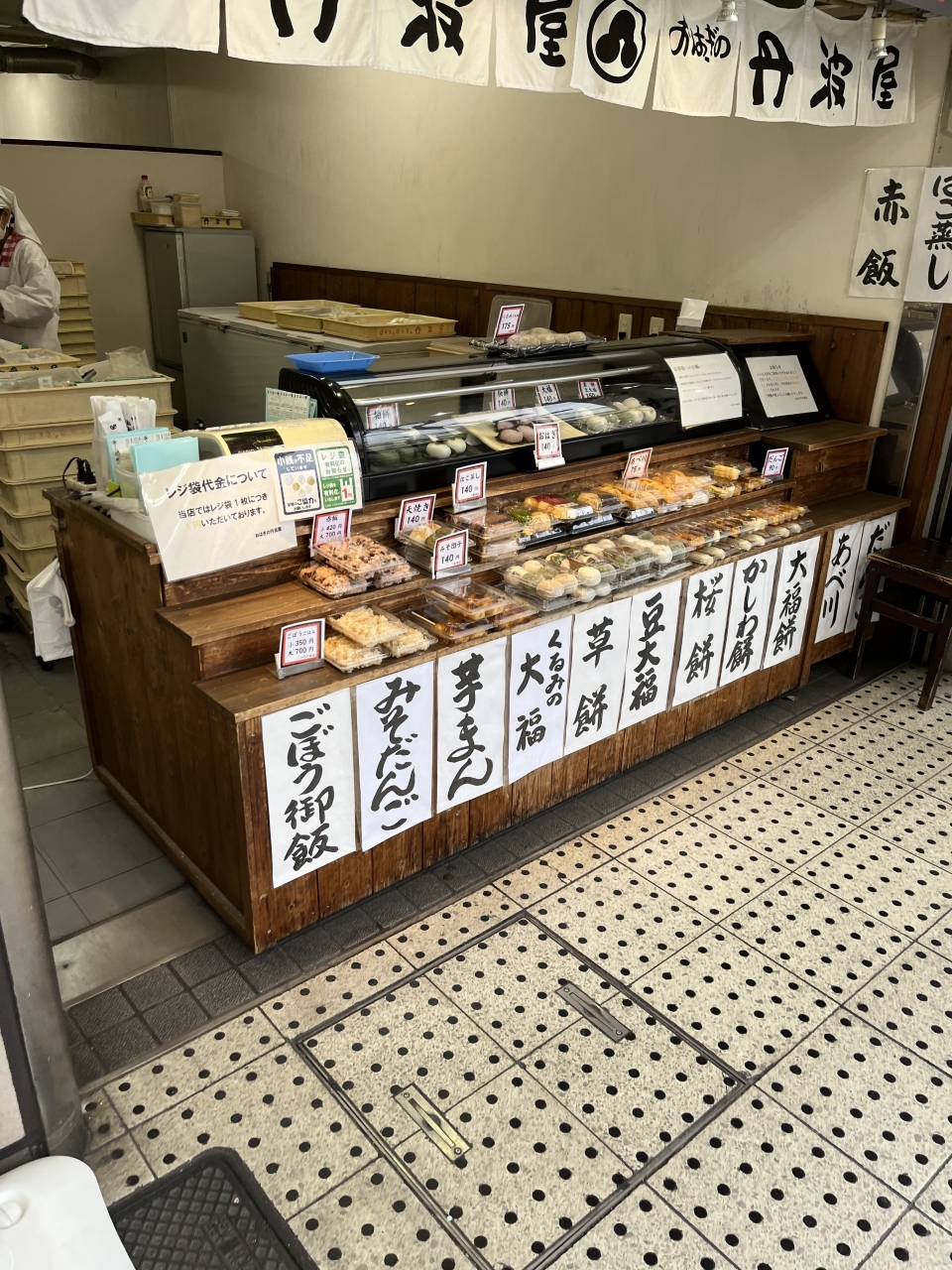 店内には 美味しそうな「おはぎ」「だんご」「桜餅」「柏餅」「大福」などなど…が並んでいます。