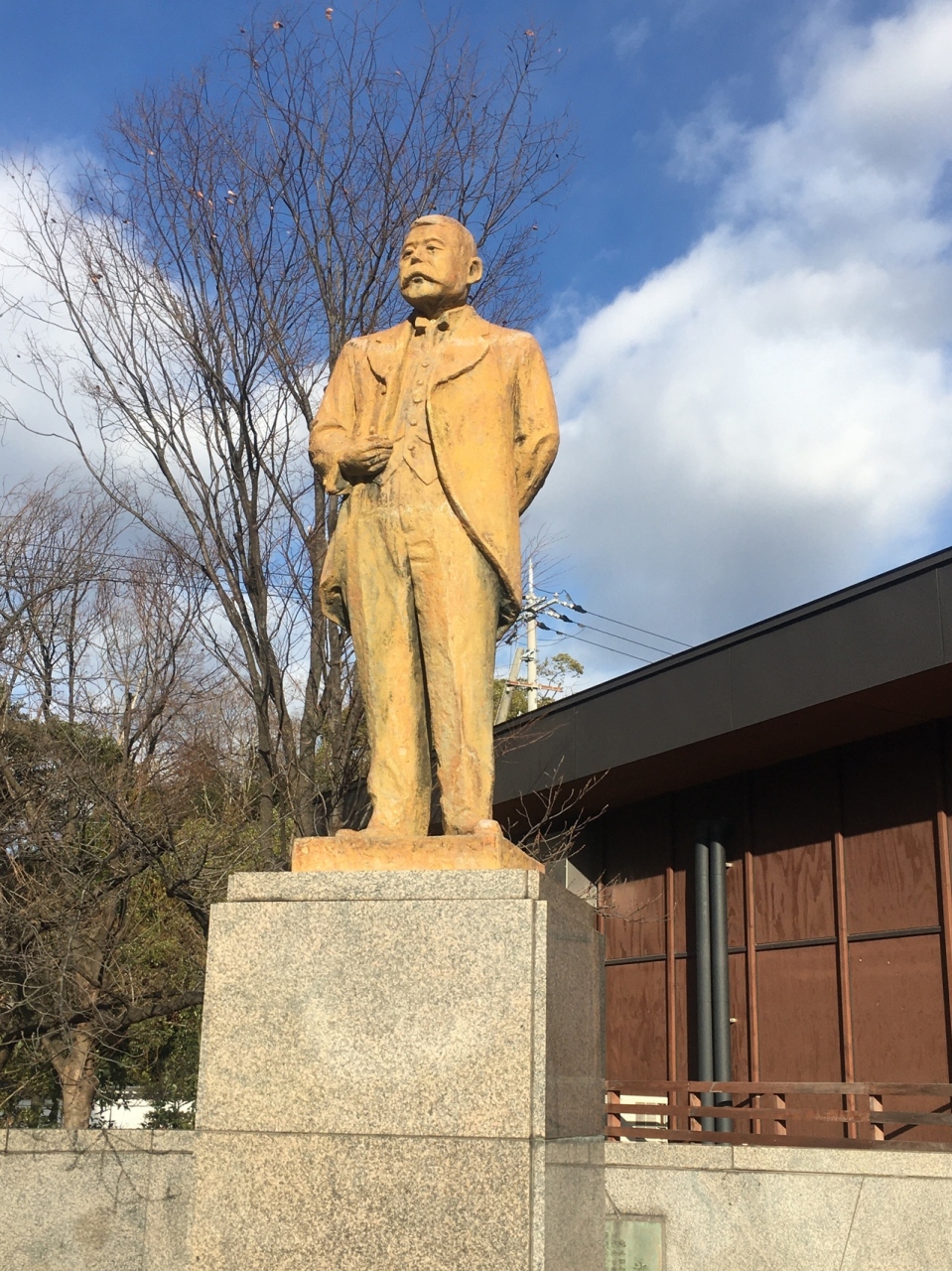 大阪環状線「天王寺駅」から徒歩で5分ほどです。明治42年開設の大阪市立公園で上町台地の西にあります。園内には天王寺動物園、市立美術館、慶沢園、茶臼山古墳そして「てんしば」などを擁する大阪の代表的な公園です。てんしばを歩いていると銅像があったので調べてみると第6代大阪市長の池上四郎さんの像で天王寺動物園開設の時の市長さんでした。