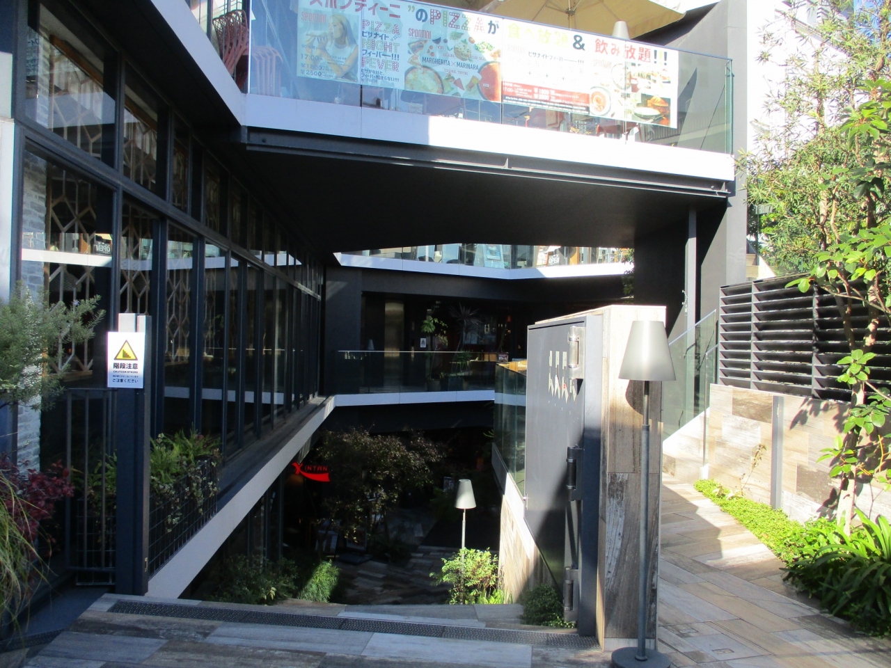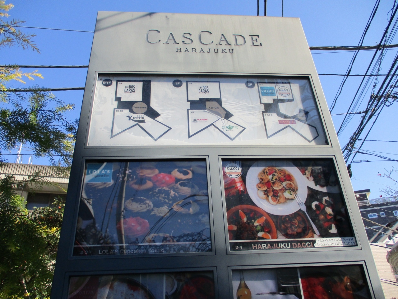 JR原宿駅から徒歩数分のところにある2階建てのおしゃれなグルメのお店が入る建物です。開放感があります。カップケーキを買うためにカスケードに行きました。駅から近いのですが、ちょっとわかりにくいところにありました。表参道から路地を入っていきます。
