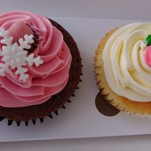 覚王山駅近くのカップケーキ専門店です。本山駅からも、徒歩圏内だと思います。1月中旬の休日午後の時間帯に訪問しました。店頭には、かわいいカップケーキがたくさん並んでいました。購入したのは、「チョコストロベリー」と「ダブルバニラ」。どちらもバタークリームたっぷりで、おいしくいただけました。