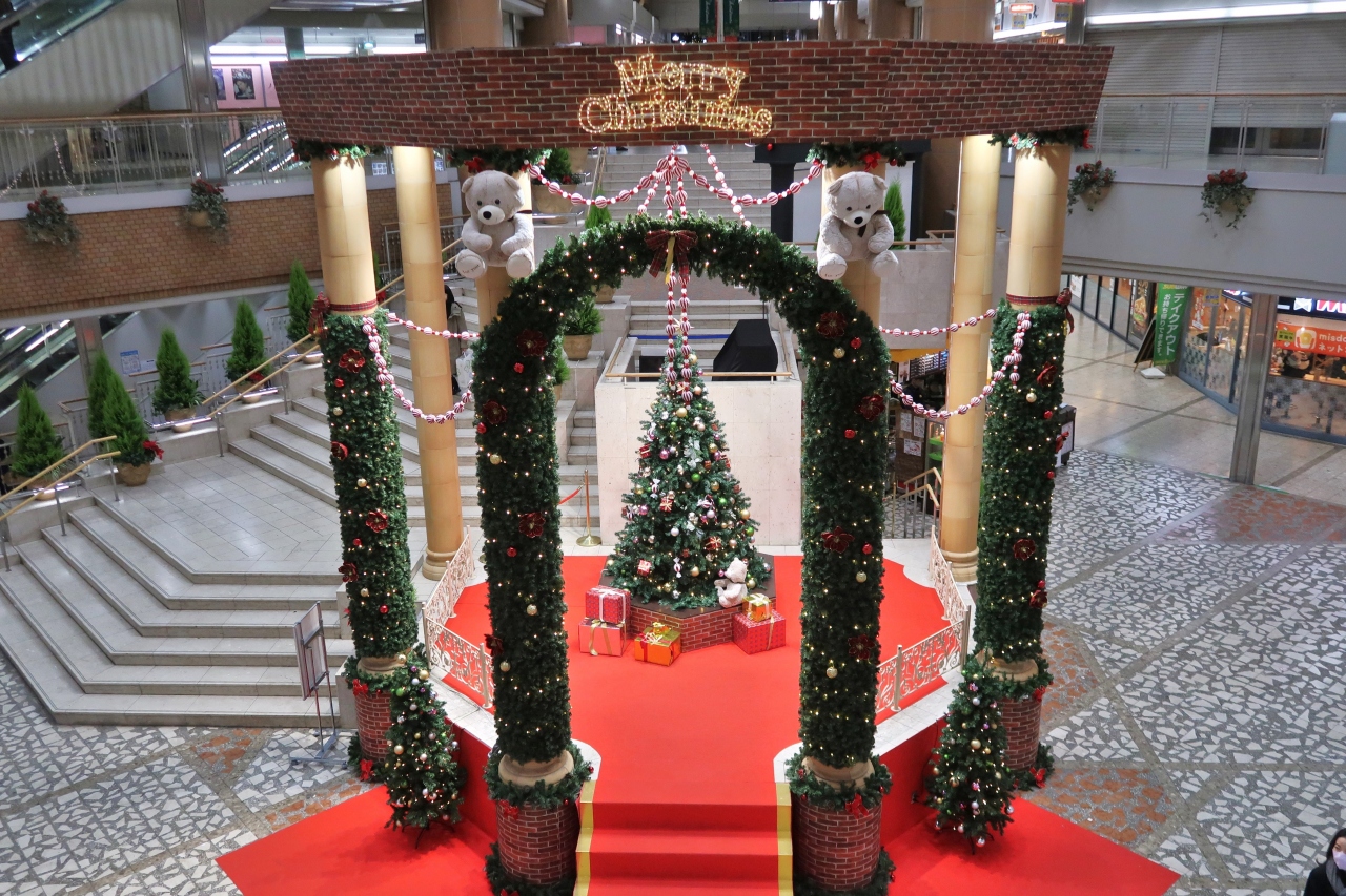 手塚治虫記念館から、宝塚大劇場前の花のみちを通って宝塚駅方面へ向かうと、阪急宝塚駅に隣接しているこちらのショッピングモールに到着しました。ちょっとしたレストラン街になっていて、1階に英国風のかわいいティールームを見つけたので一休みしました。1階から地階の吹き抜けを見下ろすと、クリスマスツリーが飾られたイベント広場が見えました。