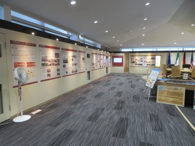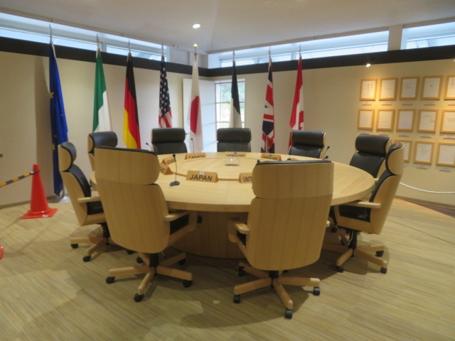 サミットで使用された円卓や椅子が展示されています、各国首脳への贈答品等の紹介や展示もあります、首脳の等身大のパネルもあります、カフェではオリジナルグッズの販売もされています、人が居なくゆっくり見学出来ました。