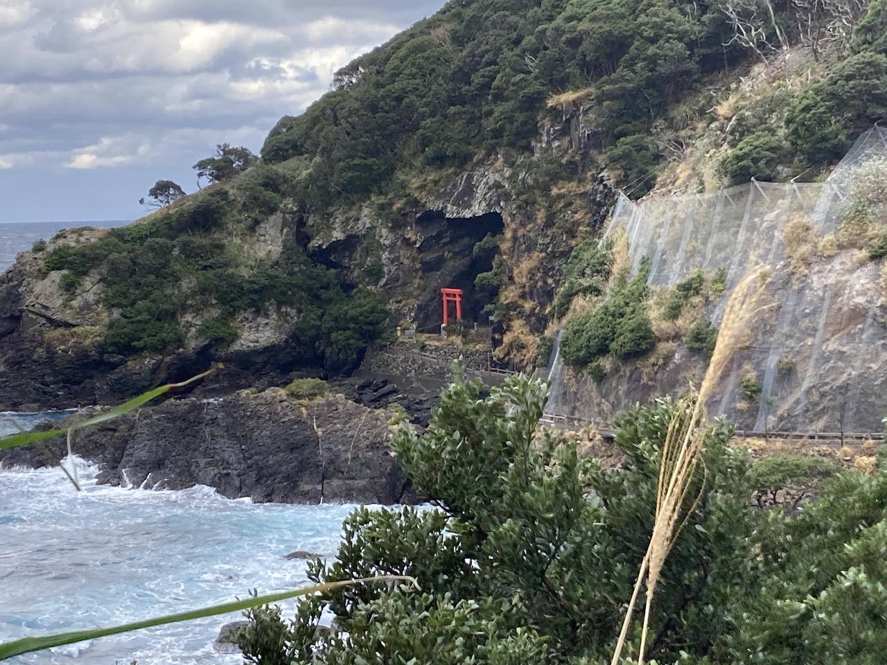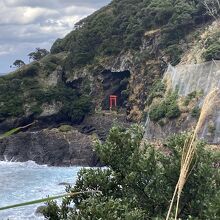 海ギリギリの所にある神社で、洞窟内が境内になっていました。