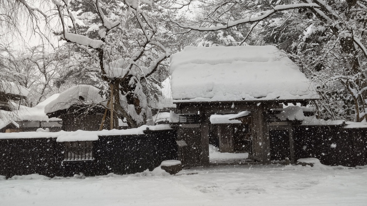 武家屋敷は入場できますが、靴を脱がないと入れないので、雪まみれで断念しました。