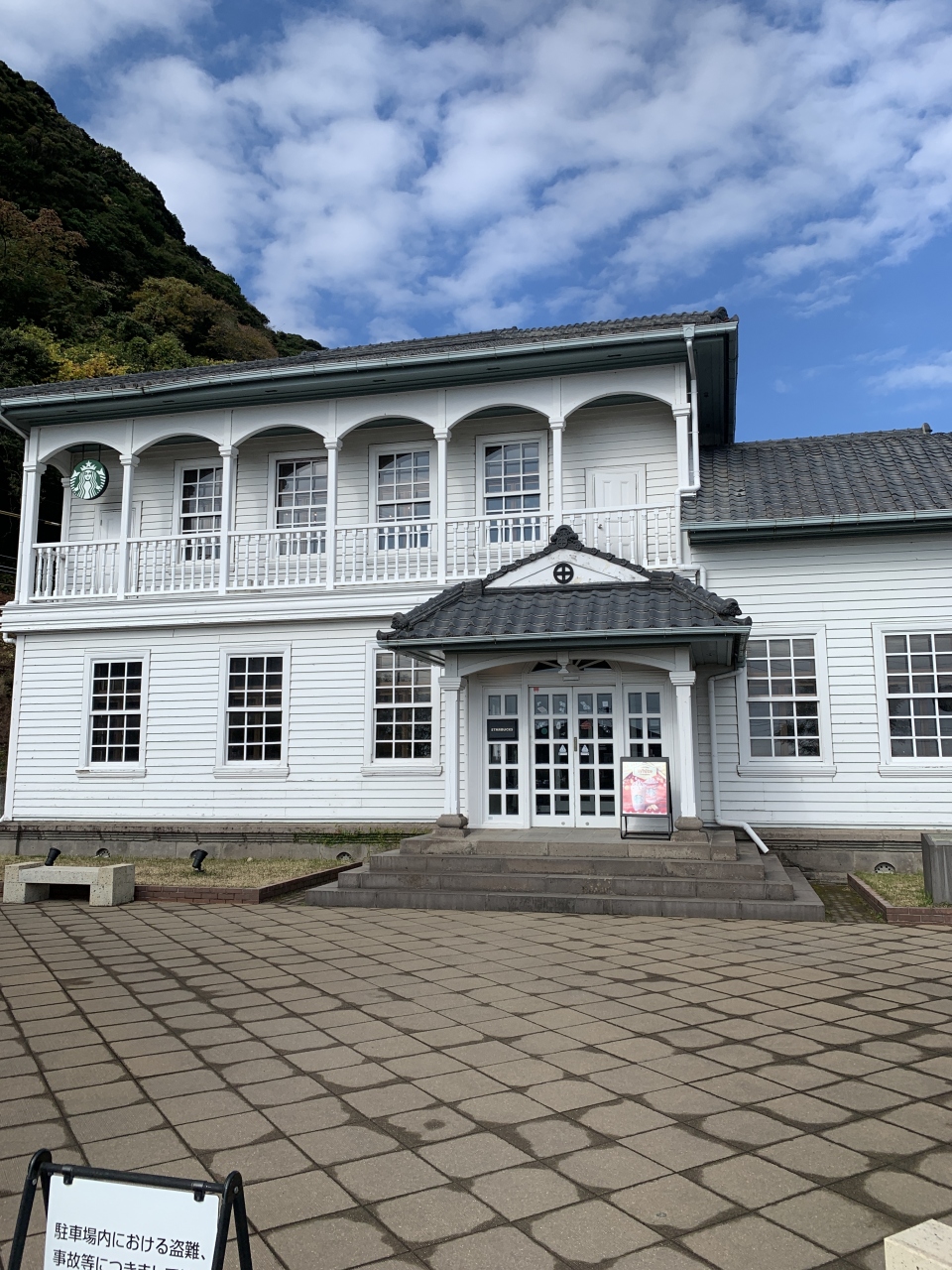 この建物の横には島津薩摩切子ギャラリーショップ、その隣にスターバックスがあるのですが、スタバにさえも島津の家紋が入ってます。