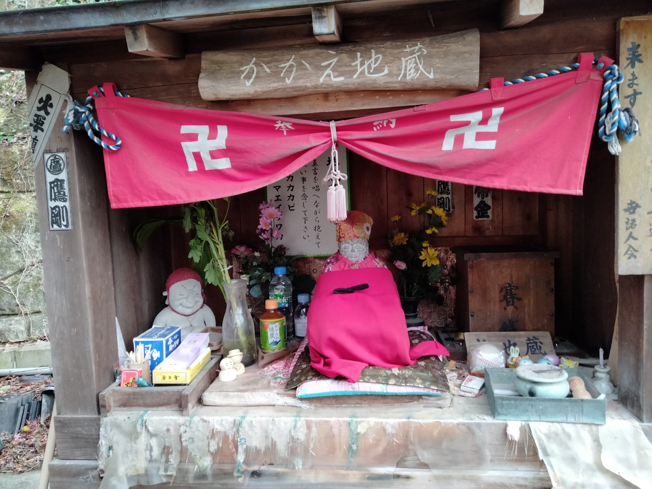 願い事を思いながら地蔵を抱え、想像したより軽ければ願い事が叶うといわれているお地蔵さん