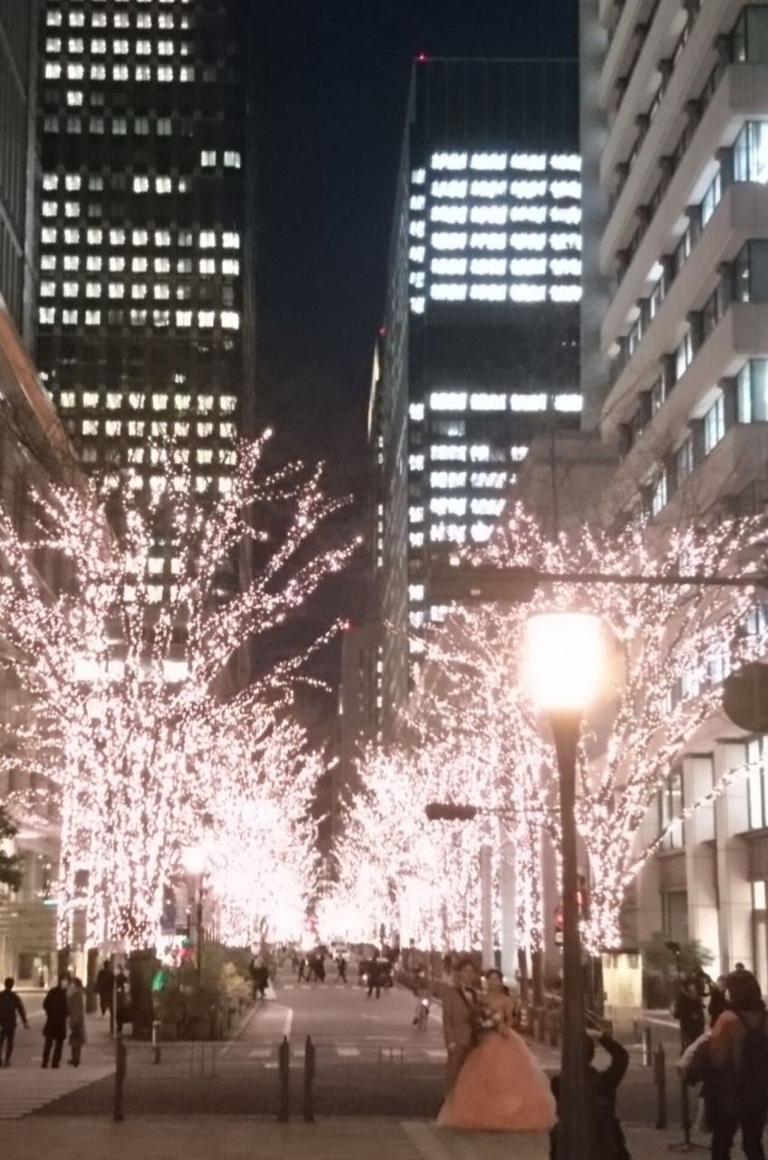 東京駅前広場に続く長いイルミネーションが続いていてキレイでした。