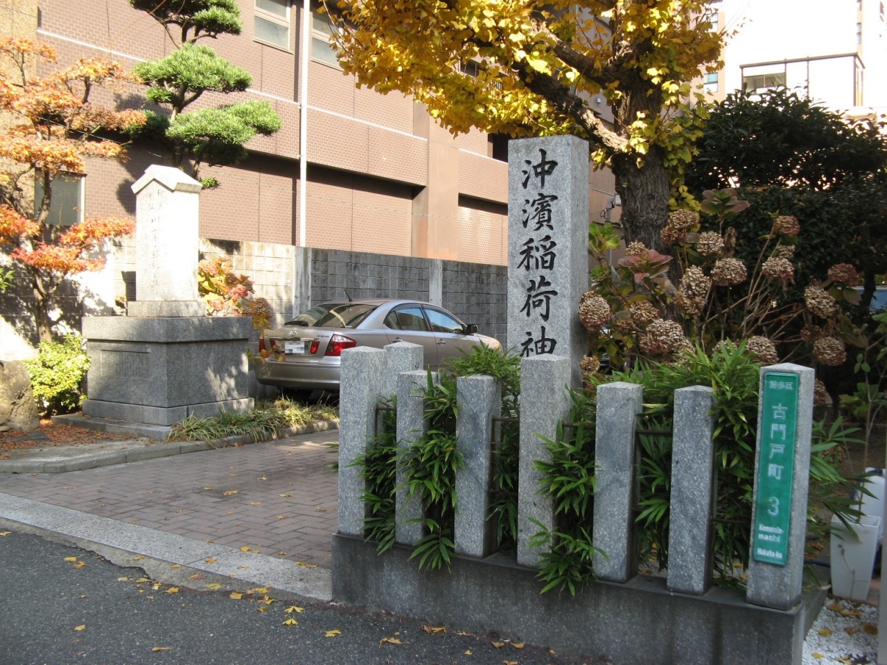 中洲川端駅から歩いて5分ほど、昭和通りから一筋入った場所に鎮座されています。参道入り口に立派な沖濱稲荷神社の石標、その傍に川上音二郎の生誕記念碑があります。境内のかなりの部分は駐車場になっていて奥に小さな祠があるだけで神社らしい風情はあまり感じませんでした。