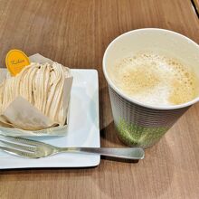 JR三ノ宮駅にあります。入口にはパンが並び、セルフスタイルのカウンターが奥にあります。パンを購入してイートインも可能で、他にケーキやパスタなどのメニューもあります。カフェ利用で訪れ、和栗のモンブランとカフェオレを注文しました。店内は広々として座席も多く、ちょっとした休憩にも利用できて便利です。