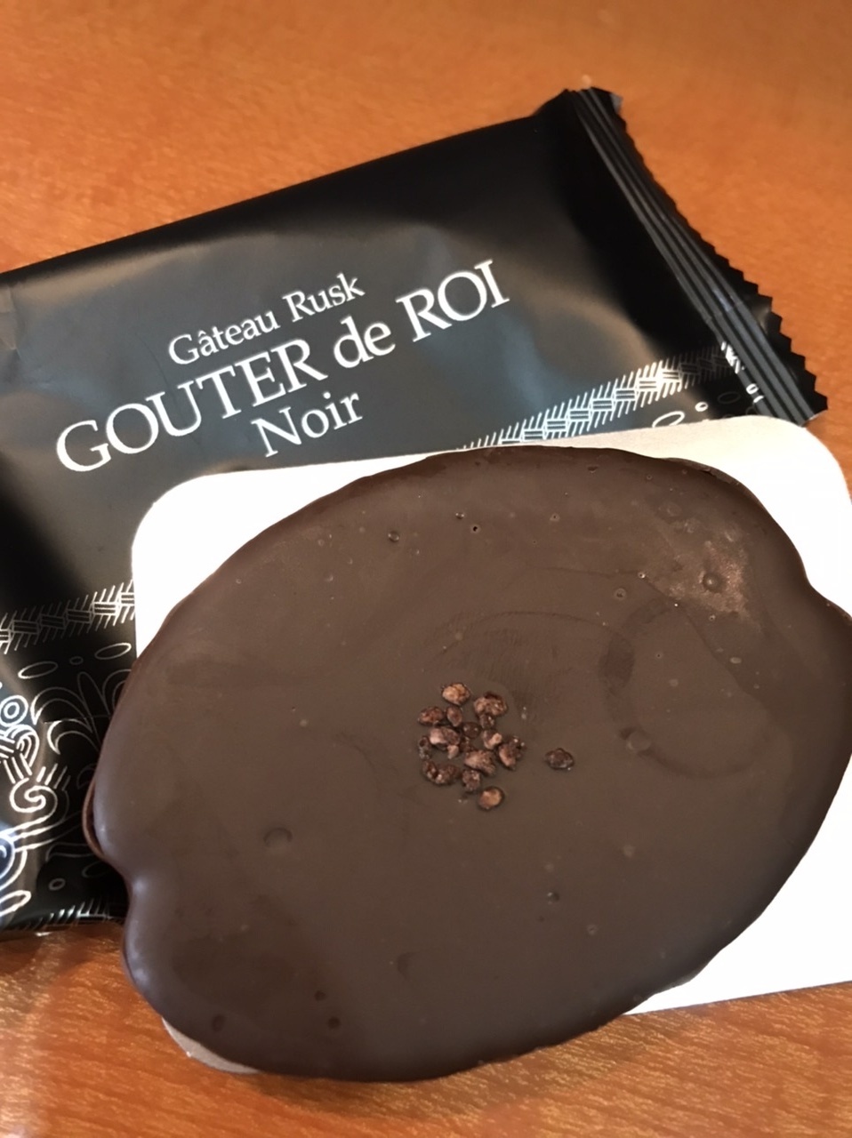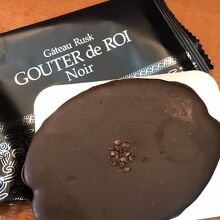 チョコレートが染み込んだラスクにダークチョコレートをこれでもかとたっぷりかけてある。甘さ控えめ、チョコレートの効果でラスクらしくなく、ラスク好きもそうでない人もおいしくいただけるのではないかと思う。一枚食べるとかなりの満足感ご得られる。