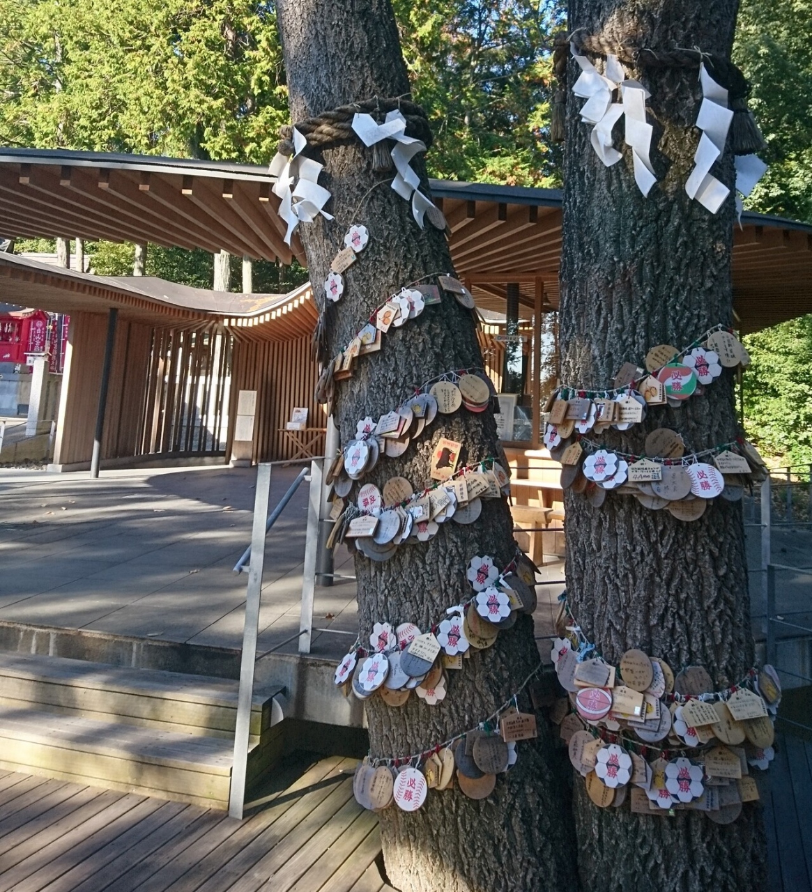 足王社が有名で、平成13年日韓共催サッカーワールドカップの年に足の御守としてサッカー日本代表チームエンブレム織り込み御守りとエンブレム絵馬を授与し始めたところ、多くのサポーターが押しかけて有名になりました。