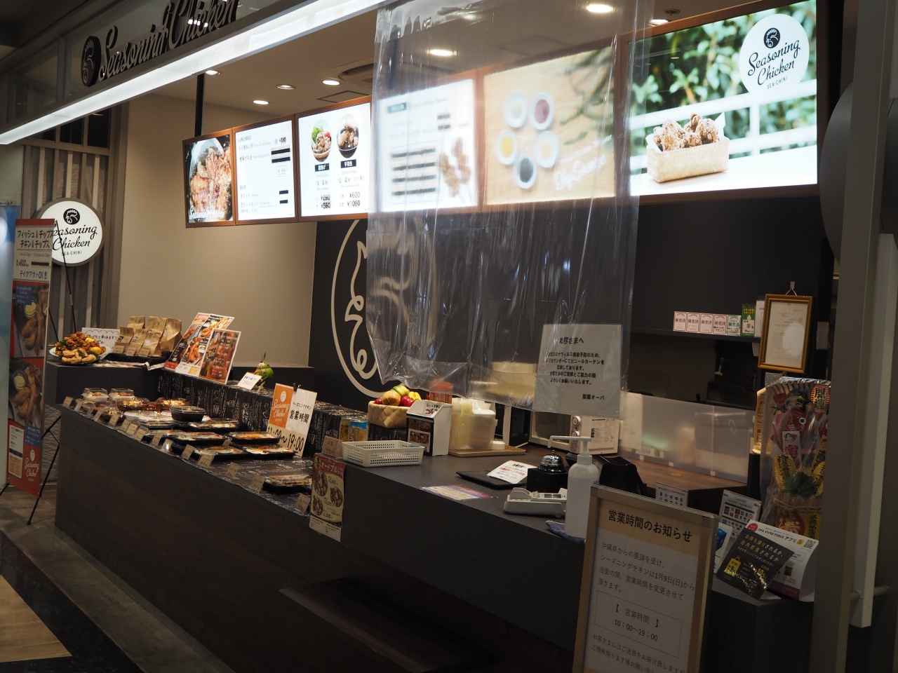 モノレールの旭橋駅に隣接している那覇オーパの2階にシーズニングチキンはあります。カウンターだけの店ですが、目の前がフードコートになっているので、ここで食べることも可能です。おもにはテイクアウトの焼き鳥や空揚げなどの商品が多いです。昼時に訪れた時は唐揚げなどのお弁当が多くありました。