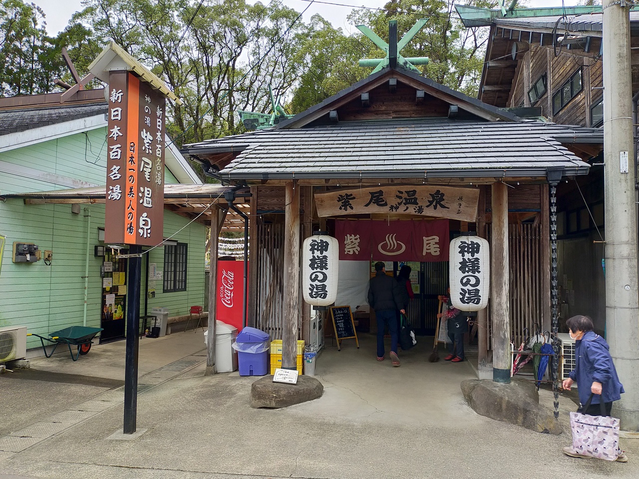 旅館が数軒と区営の日帰り温泉「神の湯」施設のみの温泉です。神の湯の源泉は隣接している神社の本殿下から湧き出ているそうでした。少し緑色がかったヌルヌル感のある湯です。温泉好きなら、一度は入って損のない温泉です。