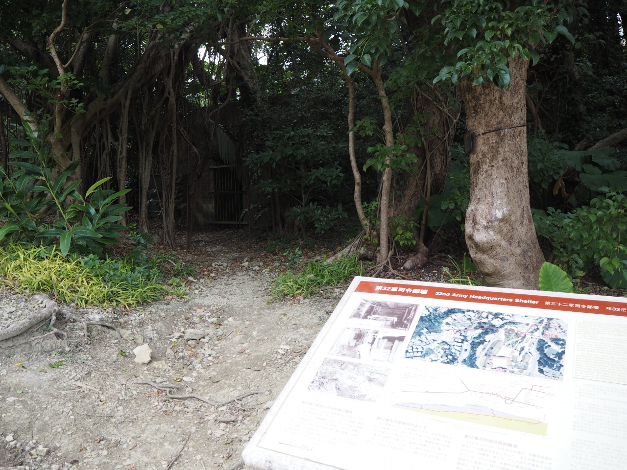 首里城から龍淵橋へと降りてくる途中に第32軍司令部壕はあります。案内板はないと見過ごす感じです。塹壕の入口付近は木々、雑草に覆われて放置されている感もあります。戦中の歴史を物語るものなので、保存にも気を付けて欲しいです。