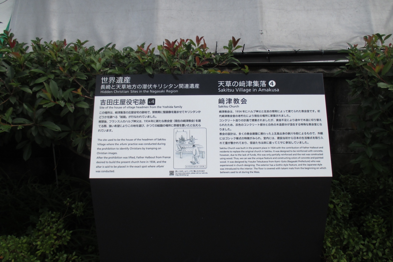 崎津教会の内部は畳敷きとのことでしたので、どんな感じなのかと興味を持って訪れましたが、内部見学には予約が必要とのことでした。お寺さんなどでも開放して、自由にお参りして・・・というところもあれば、信徒だけに開放しているところもあります。現在の神父さんのお考えですから、大人しく従いました。