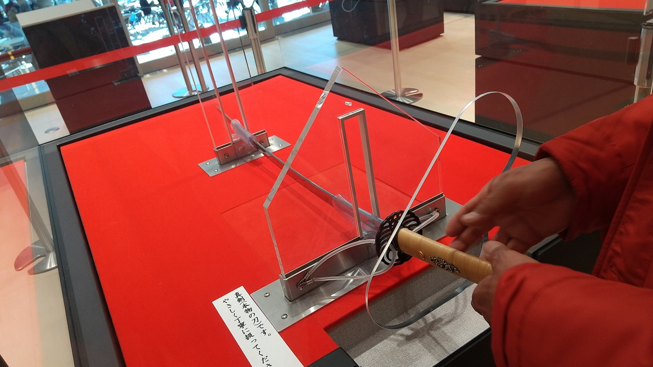 体験コーナーでは実際に刀や大太刀の複製に触れる事ができました。