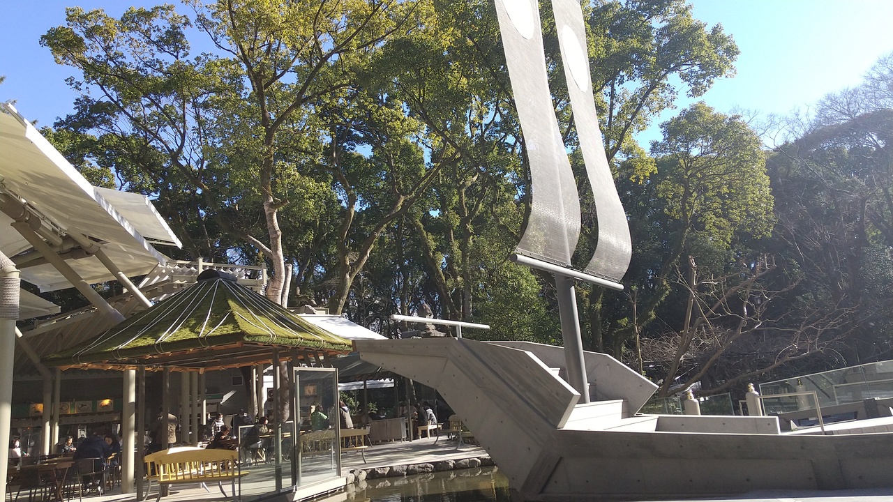 草薙館の外の売店、休憩スペースも新しくでき、ゆったりできました。