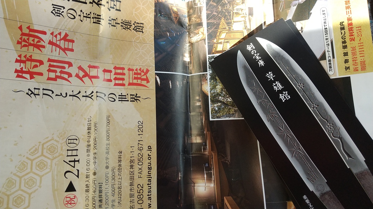 今年は新たにできた剣の宝庫草薙館を見てきました。新春特別展で数々の名刀、大太刀を見る事ができました。